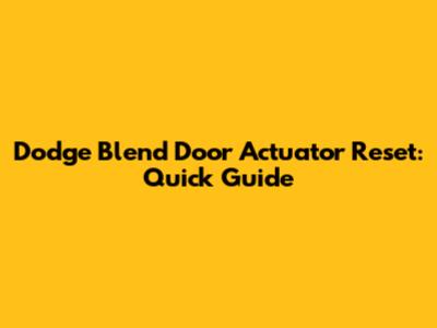 Step-by-Step Guide to Resetting Your Dodge's Blend Door Actuator