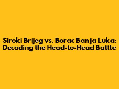 Siroki Brijeg Vs. Borac Banja Luka: H2H Showdown