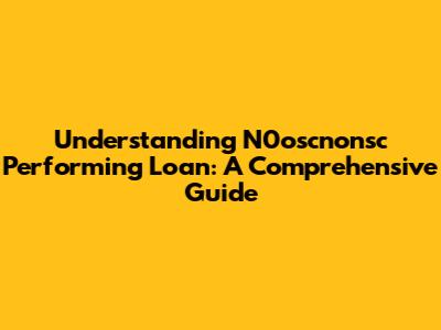 Understanding N0oscnonsc Performing Loan: What Does It Mean?