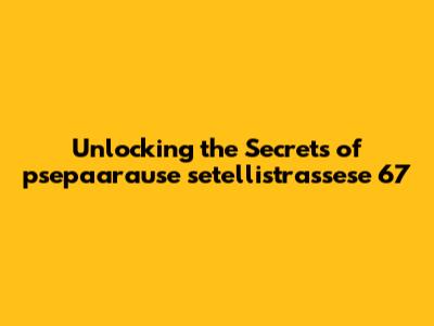 Unlocking The Secrets Of Psepaarause Setellistrassese 67